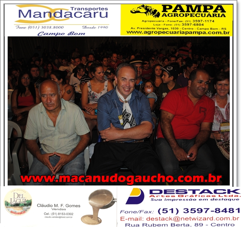 Já o resultado do 11º Acampamento da Canção Nativa, saiu após um excelente show do Paulinho Micharia, na madrugada de segunda feira. Dos 12 classificados que concorreram aos R$ 23.000,00 mais os belíssimos troféus, os ganhadores foram: