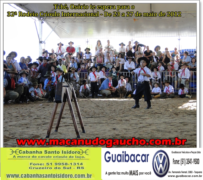 24ª FECARS – Vaca Parada Piazinho e Piazito Tem menino que mal tirou as fraldas e já está com laço em uma mão e em outra um troféu. Acompanhem a quantidade de meninos que participaram desta modalidade. ◄1234567121314► ← 24ª FECARS – Vaca Parada Premiação 24ª FECARS – Vaca Parada Bonequinha e Prendinha →