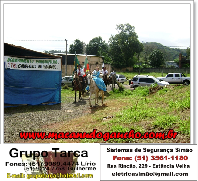 O Acampamento Farroupilha do CTG Gaudérios da Saudade recebeu a Chama Crioula na manhã deste domingo, 18 de Setembro de 2011. O acampamento fica localizado nas dependências da Comunidade Católica São Francisco no bairro Rincão do Ilhéus em Estância Velha.  Os presentes no acampamento foram recepcionados com versos de trova de Lírio Gomes e Missioneiro.