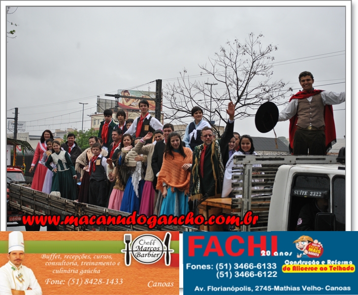 O desfile da cidade de Canoas foi um sucesso em organização, pessoas participando ou assistindo. Nem a chuva estragou o desfile. Acompanhe nas fotos o sucesso dessa gente que faz a tradição continuar viva. As fotos estão postadas em vários blocos. Abaixo você encontra o primeiro bloco de fotos, mas na pasta fotos você irá encontrar mais 5 blocos relacionados com o desfile. Acompanhe: desfile temático 2, desfile temático3, desfile temático 4, desfile campeira1 e desfile campeira2. Basta clicar na página FOTOS que encontraram os blocos relacionados acima.